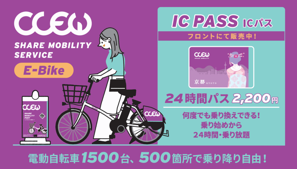 ICカードを使ってCLEWの電動自転車を一日中自由に乗っていただくことができます。