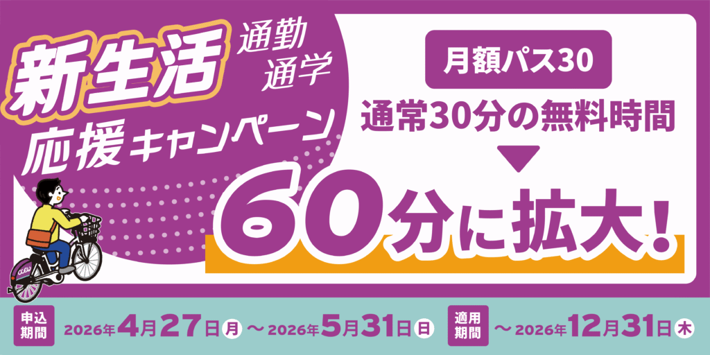 「月額パス30」の通常無料時間30分が2026年12月31日まで 60分まで無料 に拡大!